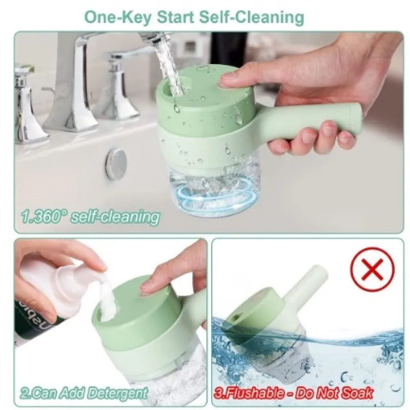 Modo de Uso: Com ele você pode ter um cortador de vegetais, picador de carne e ainda uma escova de limpeza elétrica ao mesmo tempo, apenas trocando os acessórios do conjunto multifuncional